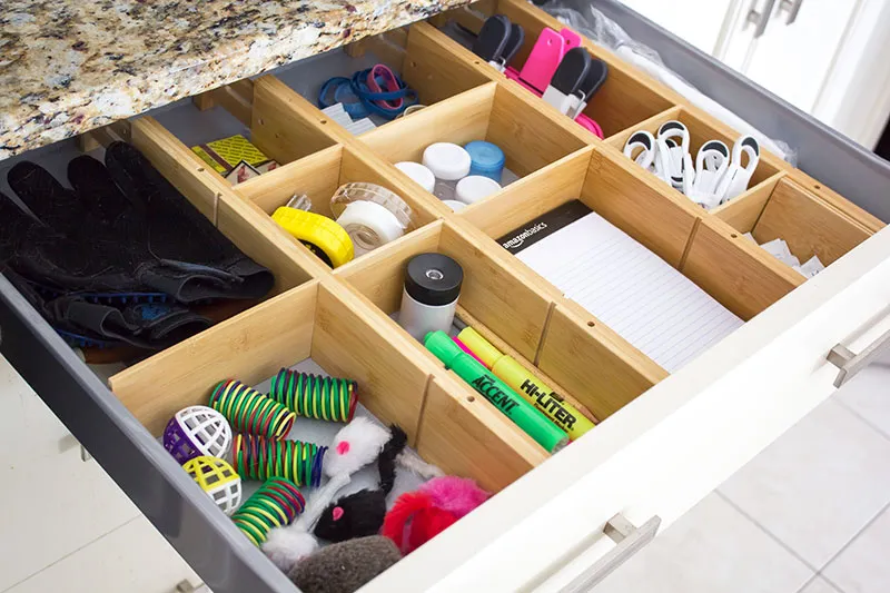 - Measure your drawer’s dimensions so you know what types of bins and dividers will fit.